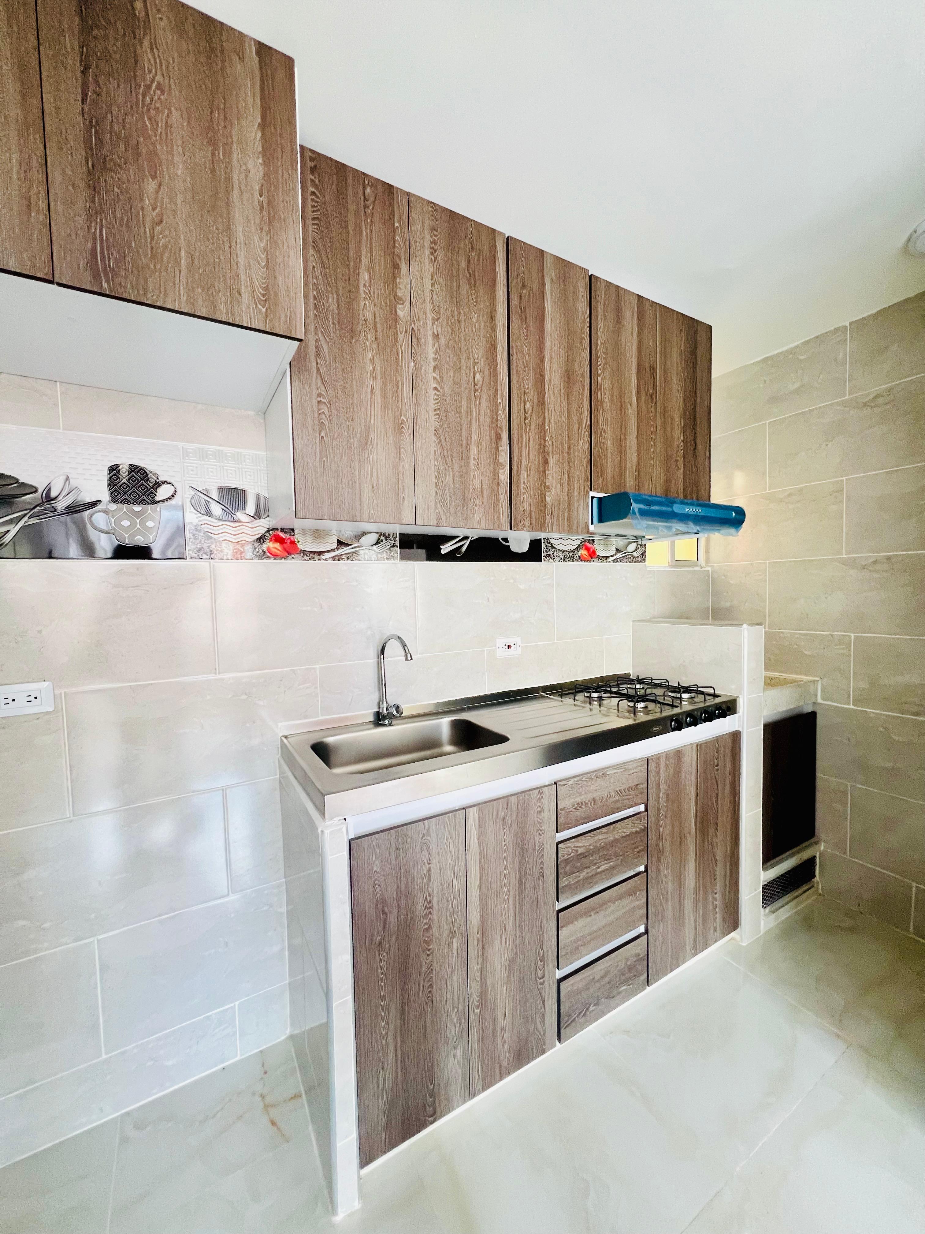 Apartamento nuevo en arriendo Hacienda Santa Cruz, Ibagué DE 42M2 Moderno apartamento nuevo ubicado en uno de los conjuntos más valorizados de la ciudad. Cuenta con 2 habitaciones, 1 baño, sala comedor amplia, cocina integral totalmente equipada y puerta de seguridad. Sus ventanas ofrecen una agradable vista al interior del conjunto, brindando tranquilidad y buena iluminación natural.