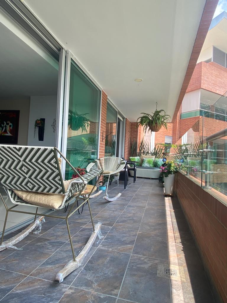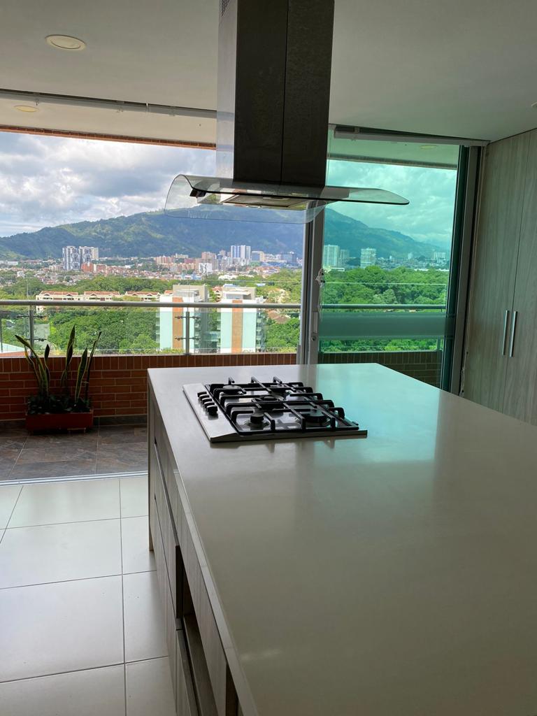 En su interior tiene con 220m2 divididos en 3 alcobas cada una con baño privado y closeth, estudio, zona tv, sala, comedor, cocina integral con lavavajillas, estufa empotrada campana extractora de olores, griferia importada, nevera de vinos, barra estilo american, tambien balcones de extremo a extremo con doble vista a la ciudad, pisos en mármol, 2 parqueaderos,